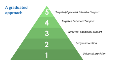 At Sandy Lane Primary School, we have a graduated approach to pupils’ needs. All teachers receive training on what this looks like for pupils in our school and their roles and responsibilities in this process. The diagram below shows this process: